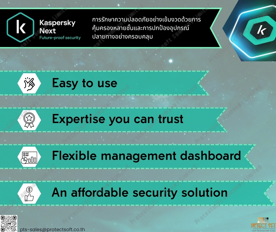 Kaspersky Next EDR Foundations ช่วยมอบแพลตฟอร์มการรักษาความปลอดภัยทางไซเบอร์ที่น่าไว้วางใจ เชื่อถือได้ และมีราคาไม่แพงให้กับธุรกิจของคุณ