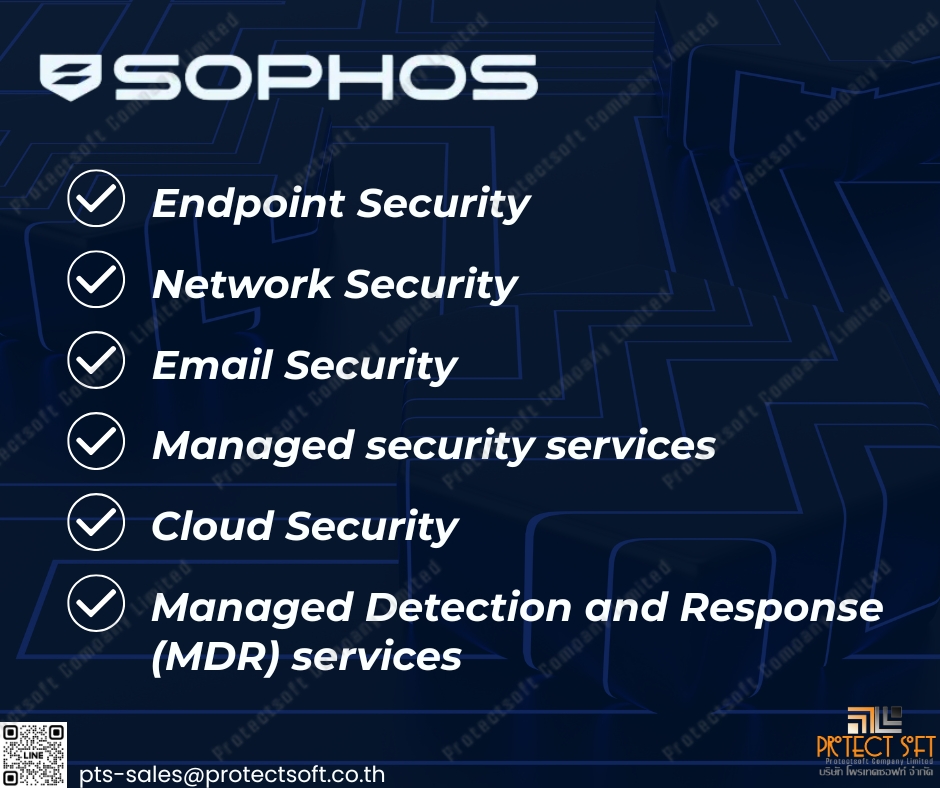 Sophos แพลตฟอร์มความปลอดภัยทางไซเบอร์แบบ AI ที่ปรับตัวได้ Sophos Central มอบการปกป้องที่เหนือชั้นให้แก่ลูกค้า พร้อมเสริมพลังให้กับฝ่ายป้องกัน ระบบป้องกันแบบไดนามิก AI ที่ผ่านการพิสูจน์ในสนามรบ และระบบนิเวศแบบเปิดที่ผสานรวมและเปี่ยมประสิทธิภาพ ผสานรวมกันเป็นแพลตฟอร์ม AI ที่ใหญ่ที่สุดในอุตสาหกรรม