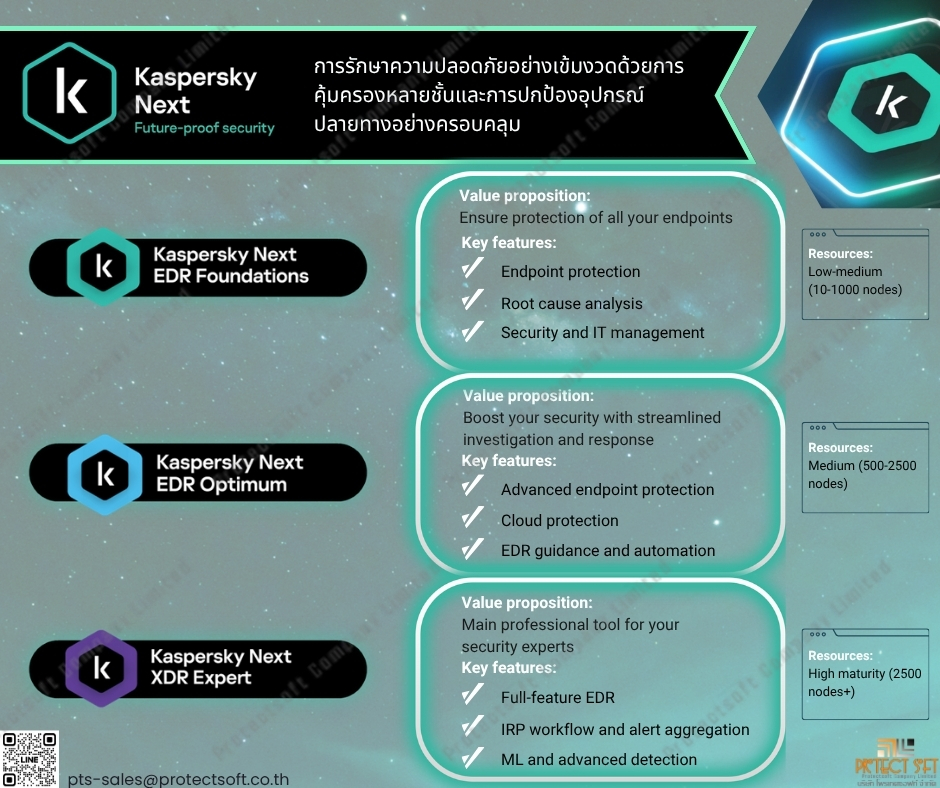 Kaspersky Next EDR Foundations ช่วยมอบแพลตฟอร์มการรักษาความปลอดภัยทางไซเบอร์ที่น่าไว้วางใจ เชื่อถือได้ และมีราคาไม่แพงให้กับธุรกิจของคุณ